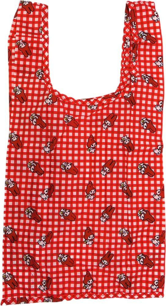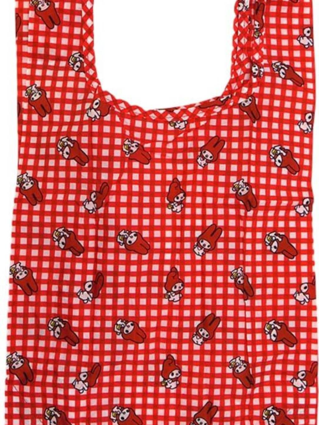 Sanrio My Melody 紅色毛絨環保袋,紅色和白色格子圖案身體,印有迷你 My Melody 圖案